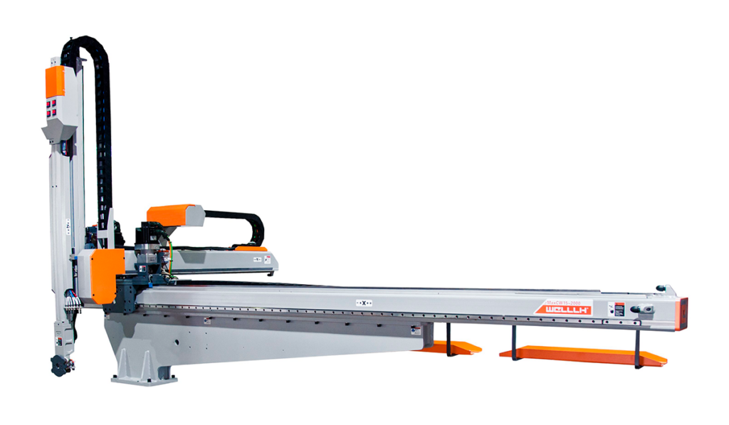 Our MaxCW series is engineered for large tonnage molding machines ranging from (470-2,800 tons). The MaxCW series has a robust open carriage for a large payload capacity and a telescoping arm to fit under low ceilings.